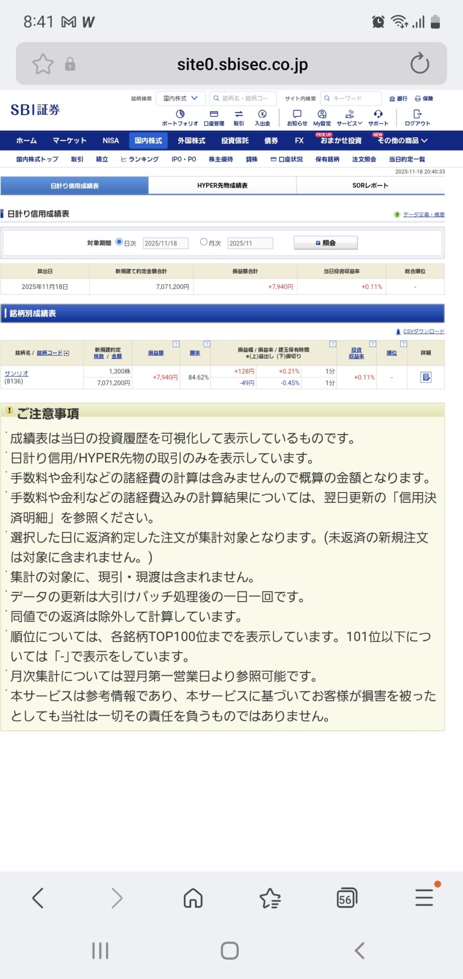これだ! デイトレード。 Twitter Facebook はてブ Pocket LINE コピー 2025.11.18 スポンサーリンク 今日からスピード注文。今日はサンリオ! 久しぶりにスピード注文。なんか心臓がドクドクしてる。そんなに大金かけてる訳じゃあないんだが、緊張してる。 それでも13回トレードして勝率は84%素晴らしいじゃあないですか。明日も続けるぞ!