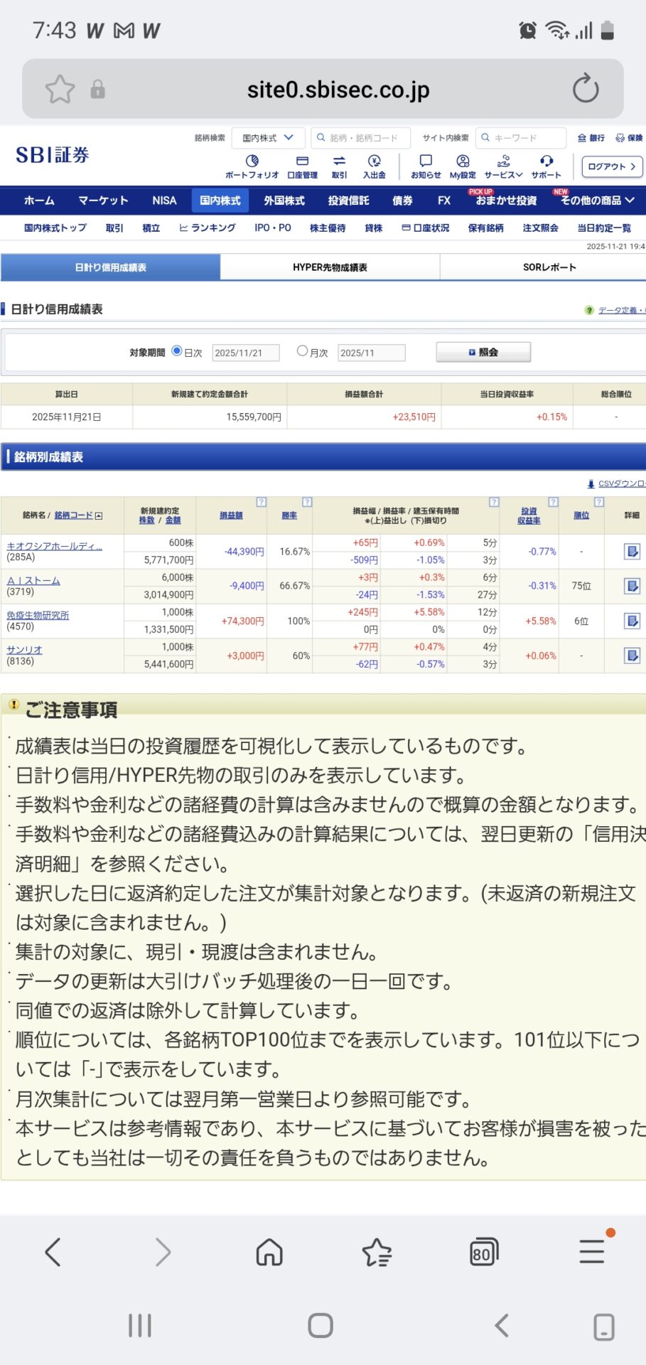 ギリギリトレード。 デイトレード。 Twitter Facebook はてブ Pocket LINE コピー 2025.11.23 2025.11.21 スポンサーリンク キオクシアに執着してたがとことん取れない。今日も大負けかい。と半ば諦めていたが、横目で免疫生物研究所が荒い動きを見せていたので入ってみる。 取れましたが危険なトレードだったのは間違いないが、アドレナリン出たな。。。 楽しい!